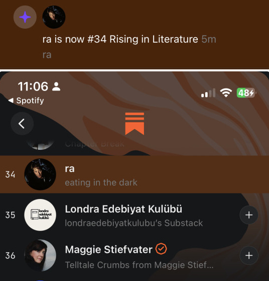 speaking of making a difference, last night i was informed that this publication (!) is #34 rising in the Literature category, a list comprised of greats like Marlowe Granados and George Saunders…