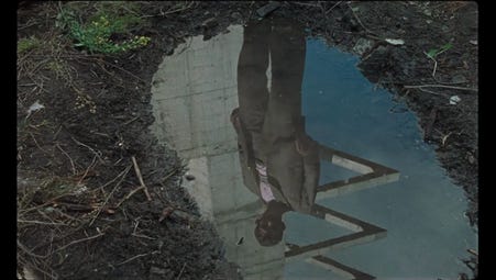 The next time i saw The Hanged Man, he arrived in the form of Arthur, who dangles upside down by a red thread looped around his ankle on the poster for La Chimera. i didn’t know to expect it when i walked into the theatre, so seeing him that way felt like walking through my own ghost. Unlike myself, Arthur is suspended in grief caused by the absence of his lover, Beniamina. He spends his life roaming in the wake of her, wading through the ruins and waiting to be taken by the sense of something beyond his earthly realm, to finally be able to feel her just as he remembers her. These searching feelings arrive as half-formed impulses towards the unknown, called ‘chimeras’ in the film, which descend upon him and turn his world upside down. Overcome by mystical revelations, this movement is reflected in that of the camera, which commences a slow, dizzying rotation, until it comes to rest on the figure of Arthur, now reversed to appear suspended in the dirt below.